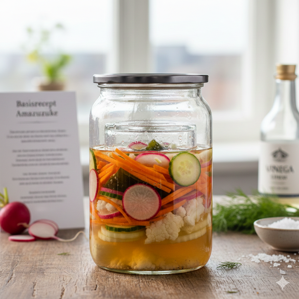 Het Basisrecept Amazuzuke vormt een onmisbare techniek binnen de Roots Jars filosofie. Waar puur Suzuke focust op het strakke zuur, brengt Amazuzuke een laag van troost en glans aan de groenten. De toevoeging van biologische suiker helpt namelijk om de celstructuur van hardere seizoensgroenten te verzachten zonder de essentiële crunch te verliezen. Het resultaat is een glanzend bijgerecht dat niet alleen prachtig oogt, maar bovendien de levende kracht van de natuur in uw jar vangt.